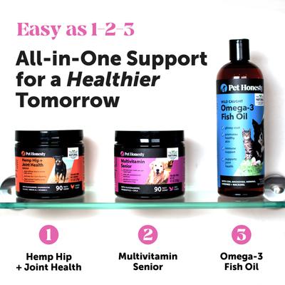 - This supplement with omega fatty acids and probiotics supports comprehensive wellness for your best friend.