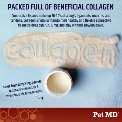 The Pet MD Gut Support & Joint Health Bone Broth Powder Dog Supplement supports your dog’s health in multiple ways. It can help to support gut and joint health, and may also help your furbaby with allergies or food sensitivities. Adding bone broth to your pup’s meal daily acts as a multivitamin to boost nutrition for a balanced diet. This dry blend of free-range elk bone features finely ground, premium grade “A” antler for premium nutrition support. The convenient powder requires no prep time, so you can just sprinkle it on your furbaby’s meal. This premium bone broth powder is rich in nutrients like amino acids, potassium, glucosamine and chondroitin sulfate for paw-some health. It’s also easy to digest and su-paw tasty to get those tails waggin!