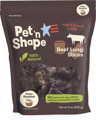 Treat your pup to a little slice of heaven with Pet 'n Shape Beef Lung Slices Dog Treats. These mouthwatering treats are lightweight, crunchy and ideal for playful puppies, adults and senior dogs of all sizes. They are 100% natural and proudly made and sourced in the USA using no wheat, corn, soy, artificial additives, colors, or preservatives. Resealable packaging locks in their freshness and makes storage convenient and easy. Break them into smaller pieces to use as a training tool or give them as an anytime treat!