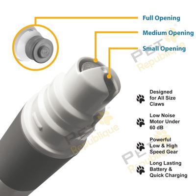 - Three different grinder openings accommodate many types of pet nails including dogs, cats, rabbits, ferrets and more.