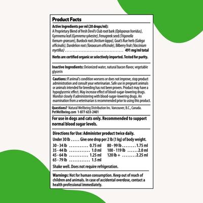 Active Ingredients: Devil’s Club Root Bark (Oplopanax horridus), Gymnema Leaf (Gymnema sylvestre), Fenugreek Seed (Trigonella foenum-graecum), Burdock Root (Arctium lappa), Goat’s Rue Herb (Galega officinalis), Dandelion Root (Taraxacum officinale), Bilberry Fruit (Vaccinium myrtillus).