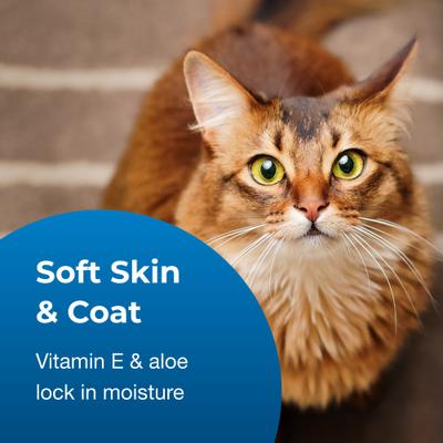 - Naturally derived cleansing agents help lift away dirt and grime, while aloe vera, vitamin E, and olive oil work together to nourish the skin and coat.