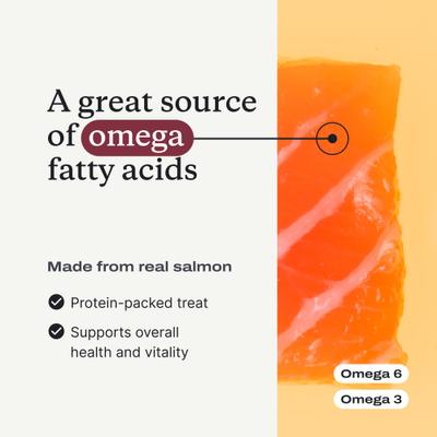 Petlab Co. Salmon Bites Dog Treats are crafted using only the best ingredients and with continued use, they can help to maintain your furry friend’s skin and coat and promote his natural defenses. They can also help support his oral hygiene by cleaning his teeth through chewing, targeting plaque and tartar buildup. These tasty salmon treats are also a great option for fussy eaters or canine companions who suffer from sensitivities or intolerances.