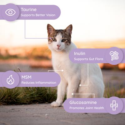 - Includes glucosamine, chondroitin, and MSM to provide daily joint and mobility support for cats of all ages.