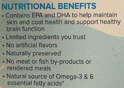 Salmon, Brown Rice, Pea Fiber, Calcium Alginate (Casing), Fish Oil (Source Of EPA And DHA), Salt, Vegetable Glycerin, Mixed Tocopherols (A Preservative), Organic Apple Cider Vinegar, Citric Acid (Preservative), Rosemary Extract.