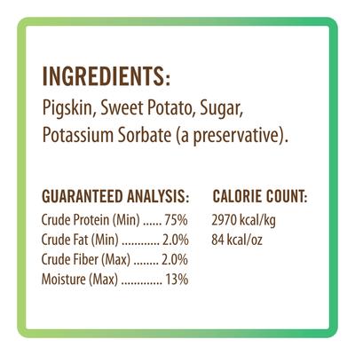 Pigskin, Sweet Potato, Salt, Sugar, Potassium Sorbate (a Preservative).