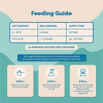 Directions for Use: For healthy cats weighing 5+ lb, sprinkle 1 scoop once per day on your pet's food and mix well. Adjust accordingly for senior cats.