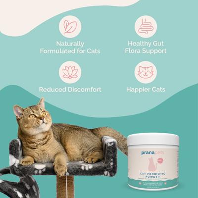 - Aid in managing diarrhea and improving stool consistency by adding this probiotic powder to your kitty’s diet.