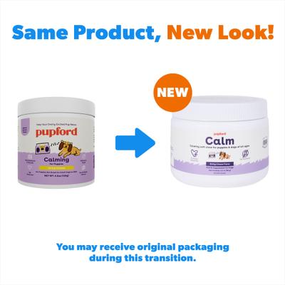 Help your pup loosen up with Pupford Calming String Cheese Flavored Soft Chew Calming Supplement for Puppies! This calming supplement is specially made for puppies. Chamomile, passion flower, valerian root and L-theanine work together to help ease anxiety, stress and hyperactivity. Meanwhile, magnesium citrate supports strong bones, a healthy immune system, muscle function and more. Whether you’re crate training, socializing or taking a trip to the vet, this soft chew supplement offers an easy way to comfort your furbaby. Plus, it comes in an irresistible string cheese flavor!