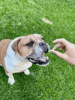 - Reward your pal with a no-meat jerky treat!