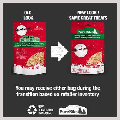 Let your furbaby share the great flavors of holiday festivities with PureBites Holiday Turkey & Sweet Potato Freeze-Dried Dog Treats. These treats are made with just two ingredients – pure human grade turkey breast and sweet potato. Freeze-Dried raw to lock in the aroma, texture and freshness, these treats are tasty for tail-wagging pups. Freeze drying just removes water, preserving nutrients in these treats to support a healthy, happy furbaby. These treats average just five calories each, so they’re paw-fect for dogs who need to watch their weight. They’re also ideal for dogs who are diabetic, who are on a restricted diet, who have allergies or who have gastrointestinal disorders.