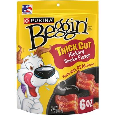 Tiras Purina Beggin' con carne real, corte grueso, sabor ahumado a nogal, premios para perros, bolsa de 6 oz