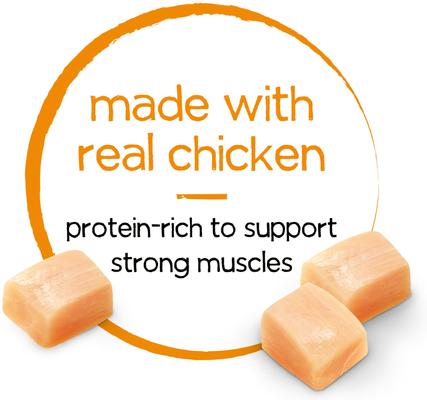 Bring exciting variety and enhanced nutrition to your pooch’s menu with Purina Beneful Infused Pate with Real Chicken, Carrots and Spinach Wet Pate Dog Food. Purina crafts this pate dog food with real chicken to help create yummy meals with a satisfying texture. This Purina adult dog food is infused with fish oil for dogs to help support a healthy immune system and also contains real carrots and spinach. While this high protein canned dog food pate is packed with flavor and nutrition, it is made with no artificial colors, flavors or preservatives. Beneful dog food is 100% complete and balanced for adult dogs. Serve the recipe alone as a tasty and nutritious standalone meal, or delight your furry friend by mixing this Purina high protein dog food with Beneful dry kibble. Purina Beneful Infused Pate wet pate dog food is produced in Purina-owned, U.S. facilities, giving you one more simple way to add fun, flavor and nutritional benefits to your best friend’s bowl.