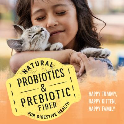 - Purina kitten food is loaded with natural probiotics and prebiotic fiber to support your good girl's digestive health, and the gentle ingredient combo helps keep her tummy happy.