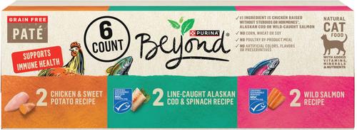 Give your purring pal the nutrition she needs with Purina Beyond Grain-Free Wet Cat Food Trout and Catfish Recipe Pate Cat Food! This natural, grain-free recipe is purr-pared with protein-rich trout as the first ingredient. It features wholesome vegetable accents, vitamins, minerals and nutrients. It’s also free from corn, wheat, soy, poultry byproduct meal, artificial colors, flavors and preservatives. Even the most finicky feline will me-wow at the delectable taste, and you can rest easy knowing you’re giving her a fur-esh, high-quality meal!