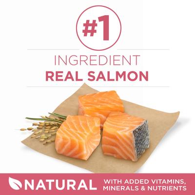 - Este alimento para pieles sensibles está elaborado con salmón real como ingrediente principal para ayudar a fortalecer los músculos de tu mascota, incluyendo un corazón sano.