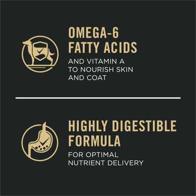 Answer your large breed dog’s specific nutritional needs with Purina Pro Plan Brand Dog Food Large Breed Chicken and Rice Formula adult dry dog food. With real chicken as the number one ingredient, this large breed dog food provides protein, an essential nutritional building block within your dog’s body. Plus, this highly digestible formula promotes nutrient bioavailability, which means it is formulated to support optimal nutrient absorption. With 26% protein and 12% fat in every serving of this dog food for large breeds, this formula helps maintain large breed dogs’ ideal body condition. Every high-quality ingredient is carefully chosen for a specific nutritional or functional purpose, so your canine companion gets the wholesome goodness you expect from a trusted pet food brand in every delicious bowl. Formulated for large breed dogs weighing 50 lbs. and over, this super-premium dry dog food offers 100% complete and balanced nutrition for adult dogs.