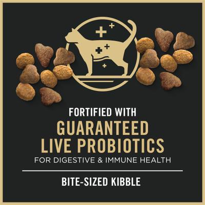 Give your cat the advanced nutrition she deserves with Purina Pro Plan COMPLETE ESSENTIALS Salmon and Rice Formula adult dry cat food. This dry cat food recipe delivers high-quality protein, including real salmon as the first ingredient, and every high-quality ingredient is carefully chosen for a specific purpose. This cat food kibble features guaranteed live probiotics to promote digestive health, plus Vitamin A and linoleic acid, an omega fatty acid, to nourish the skin and coat. Plus, antioxidants help support immune system health, so your cat looks and feels her best every day. With a taste and texture sure to capture your kitty’s attention, this cat food formula delivers the sensory experience cats love. Tend to her nutritional needs and please her palate with this dry cat food as part of her daily routine.