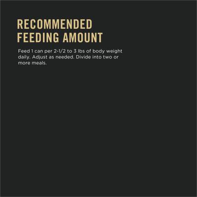 Feed 1 can per 2-1/2 to 3 lbs of body weight daily. Adjust as needed. Divide into two or more meals.