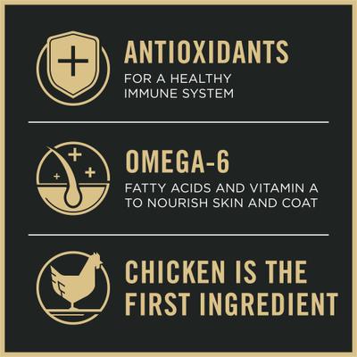 - Este alimento para perros para el control de peso está elaborado con pollo real.