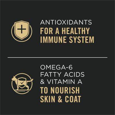 - Incluye ácidos grasos omega-6 y vitamina A para cuidar y nutrir la piel y el pelaje suave de tu mascota.