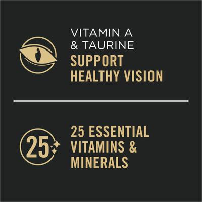 - Se incluyen vitamina A y taurina para ayudar a mantener una visión saludable.