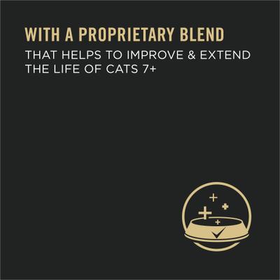 Feed your senior kitty nutrition that performs with Purina Pro Plan SENIOR Adult 7+ Prime Plus Chicken Entree Adult Wet Cat Food. Each high-quality ingredient is carefully chosen for a specific purpose. The high protein cat food starts with real chicken, and loads of protein in every serving help your furry friend keep up an ideal body condition as she gets older. Best of all, this canned wet cat food pate is made with a proprietary nutrient blend. She gets a delicious senior cat food with the taste and texture she loves, plus 25 essential vitamins and minerals, including taurine, an amino acid. Load your older kitty up with the outstanding nutrition when you serve this wet Grain-Free cat food.