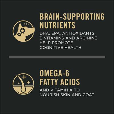 - Purina Pro Plan dog food offers DHA, EPA, antioxidants, B vitamins, and arginine to help promote cognitive health.
