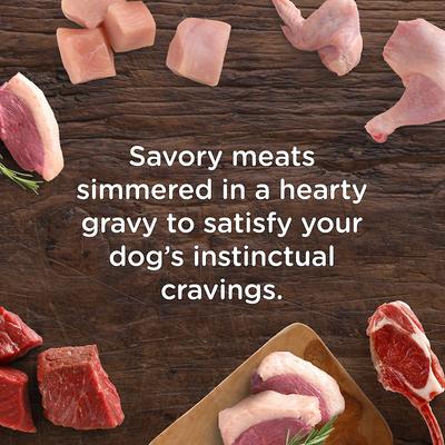 - Wet food formula provides a complete and balanced diet for dogs, on its own or as a tasty kibble topper or mix-in.