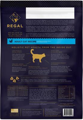 (a) This is only a guide. Optimal feeding amounts may vary based on your cat's activity level, age, breed and environment. See your veterinarian for all health-related issues.(b) 3.5 oz. of Regal food per standard 8 oz. measuring cup.