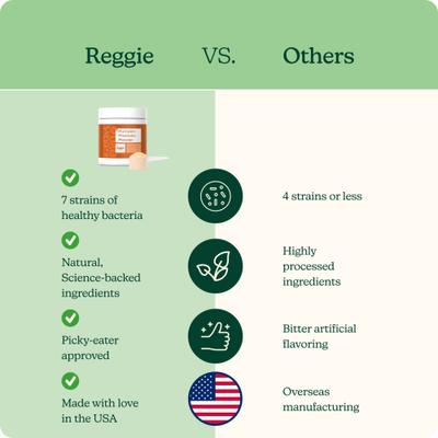 Keep your furry friend’s tummy happy and healthy with Reggie Probiotic Pumpkin Flavored Powder Digestive Aid Supplement for Dogs. This daily powder is packed with pumpkin, prebiotics, and probiotics to regulate digestion, soothe upset tummies, and aid in nutrient absorption. This digestive aid supplement is safe for sensitive stomachs and will help your pet stay balanced, comfortable, and ready for any adventure that comes their way.