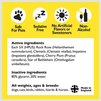 - Homeopathic, non-habit forming and alcohol-free solution that's easy to use and helps calm pets in stressful situations