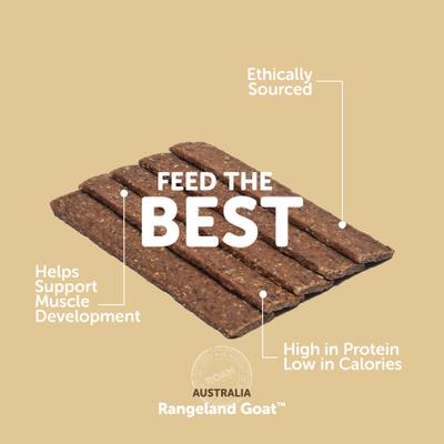 - These goat jerky treats are sustainably and ethically sourced, delivering premium flavor that’s suited for your pet’s well-being.