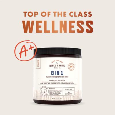 - Provides support in 8 key areas of your dog’s health and wellness.