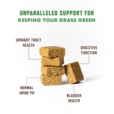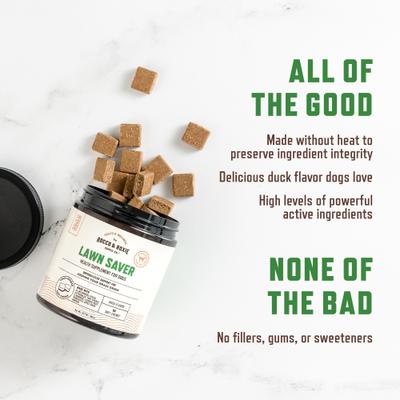Say hello to a green, healthy lawn with Rocco & Roxie Duck Flavored Chew Lawn Protection Supplement for Dogs. These delicious duck-flavored chews provide support for your dog’s bladder and urinary tract health thanks to powerful ingredients like D-mannose, apple cider vinegar, and yucca. Plus, with DL-methionine to neutralize the pH of your dog’s urine, you can say goodbye to dead, yellow spots in your yard. Made in the USA with high-quality ingredients and no fillers, gums, or sweeteners, these soft chews can promote your pet’s wellness and protect your lawn from potty time.