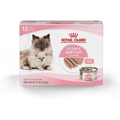- Royal Canin Mother & El alimento húmedo enlatado Babycat Ultra-Soft Mousse en Salsa ayuda a satisfacer las necesidades de las gatas y los gatitos en crecimiento de 1 a 4 meses.