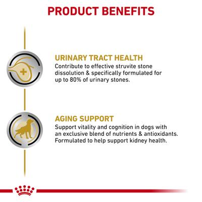 - Royal Canin Urinary SO Aging 7+ is a veterinary-exclusive wet dog food to support urinary health in aging dogs.