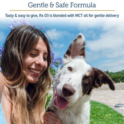 Rx Vitamins Rx D3 Pure Cholecalciferol Vitamin Liquid Supplement for Dogs & Cats is a liquid Vitamin D3 supplement designed to support your pet’s bone, kidney, and immune health. Featuring pure cholecalciferol in an MCT oil base, this formula enhances calcium absorption for strong bones and teeth while promoting overall vitality. Whether you have a senior dog, a growing kitten, or a pet recovering from health issues, Rx D3 delivers targeted nutritional support in an easy-to-administer liquid form. With its precision dropper, dosing is quick and accurate—ideal for pets of all sizes and life stages. Give your companion the foundational nutrients they need to stay active, healthy, and strong.