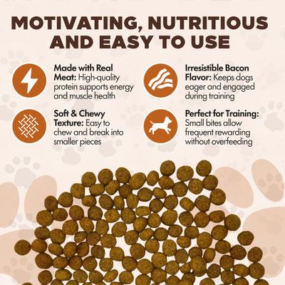 - Irresistible bacon flavor keeps dogs engaged and motivated during training.