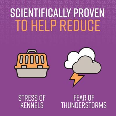 - Clinically proven to reduce or eliminate stress with patented pheromone that mimics the one mother dogs give off to calm their pups