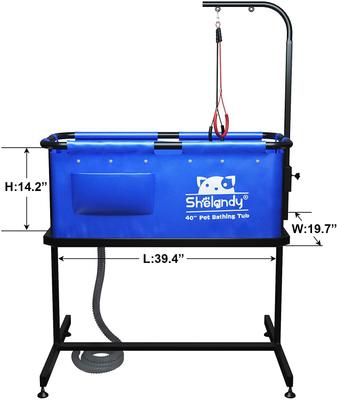 Make grooming your furry friend a simpler experience with SHELANDY Dog & Cat Bathtub! Made of sturdy PVC polymer materials, this durable tube is scratch-resistant, anti-skid, and waterproof, so it is ready to withstand your pal’s antics. The solid bottom lets it carry up to 150 pounds. Featuring a grooming arm, drain hose, haunch holder, and leashes, you can keep your cat or dog securely in the tub as you scrub. They also free up your hands, so you can give a more thorough groom. You can place the tub on any surface, so you don’t need to bend down to wash your pet. It is paw-fect for small to medium sized cat and dog breeds.