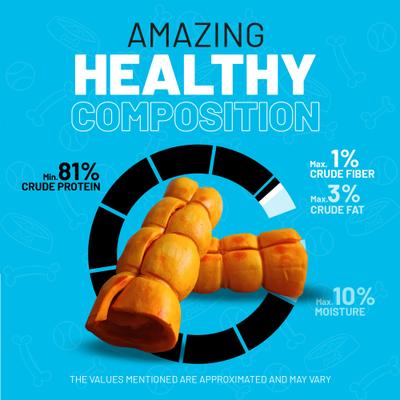 Intended as a chew, not food. Always provide fresh drinking water for your pet. This product may stain. Use in a stain-resistant area. Wash hands with soap and warm water after handling. Store in a cool, dry place.