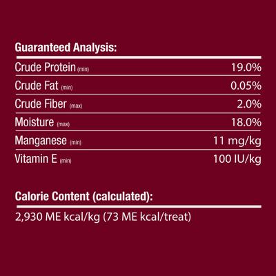 Select a treat slightly larger than your pet's mouth. This product is intended to be chewed. Always supervise your pet during chewing activity, especially if they are known to swallow their treats whole. Provide plenty of fresh drinking water and discard any leftover chunks or fragments. This product is intended for intermittent or supplemental feeding only. Treats should not exceed 10% of your dog's daily caloric intake. Visit your veterinarian regularly and discuss your pup's daily caloric requirements based on weight, size, breed, age and activity level. If you have questions about whether this product is right for your dog, consult with your veterinarian.