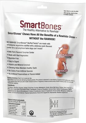 What could paw-sibly be yummier than rawhide? Smartbones Stuffed Twistz Pork Flavor Dog Treats, of course! They’re the paw-fect, rawhide-free treat for your pup who needs a daily reward or a snack. Crafted with tasty pork flavor and wholesome vegetables, full of vitamins and minerals—you can feel good about what he’s eating. Also, these treats are easy to chew and digest, so you can expect the added bonus of healthy teeth and gums!