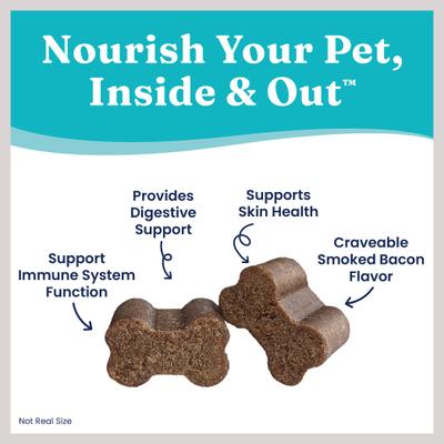 - Smoked bacon flavor dogs chews feature vitamins A, B12, C and E along with biotin to care for your BFF's overall health.