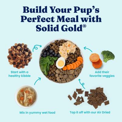 Solid Gold Nutrientboost Protein Shreds Chicken and Carrot Recipe in Broth Dog Meal Topper is intended forintermittent or supplemental feeding only. Feed as a meal topper on a complete and balanced dog food diet oras a treat.