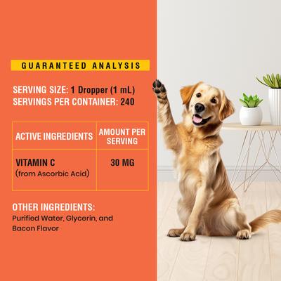 Boost your pup’s immune system with Special Breed Vitamin C Bacon Flavored Liquid Immune Supplement For Dogs. This bacon-flavored formula is designed to provide your pet with a single, powerful ingredient—vitamin C—to naturally support their immune health. With just a few drops a day, you can give your furry friend the defense they need to thrive. The liquid format makes it simple to administer, with no pills or powders to worry about. Whether you’re looking to maintain your pet’s overall wellness or targeting seasonal immune needs, this natural formula is a safe and effective choice. Made in the USA under strict quality standards, you can trust that your pet is getting the best.