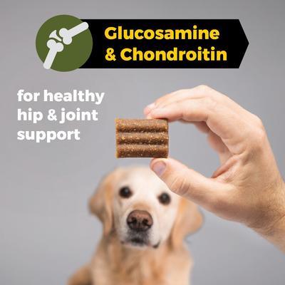 - Help support your dog’s hip and joint health with glucosamine and chondroitin.