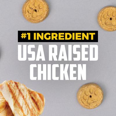 - Premios para perros sin cereales, hechos con pollo y batata, que le aportan la proporción ideal de ácidos grasos omega 6 y omega 3.