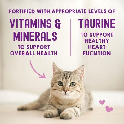 - No contiene granos, gluten, carragenina ni rellenos innecesarios, por lo que es fácil de digerir para felinos de todas las etapas de la vida.